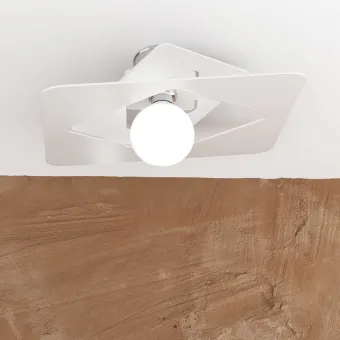 Lámpara de techo con una forma geométrica decidida y verdaderamente única en su diseño. Una lámpara de techo ultramoderna en metal pintado para adaptarse a cualquier lugar, tanto en cualquier superficie de apoyo como en el centro de la habitación. El difusor de metal permite tener juegos de luces y sombras en la estancia.