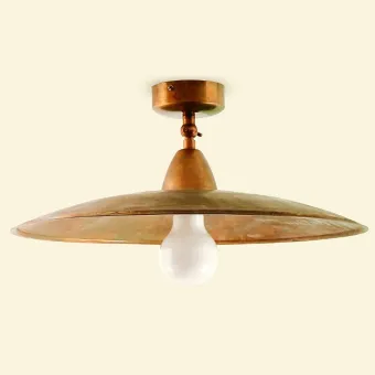Lámpara de techo de nuestra producción, realizada con un material indestructible que sólo se marca con el paso del tiempo, el latón. Un compuesto natural que simplemente se envejece a mano y no necesita ningún mantenimiento. Apto para ambientes clásicos o rústicos y para zonas de playa. Hecho en Italia