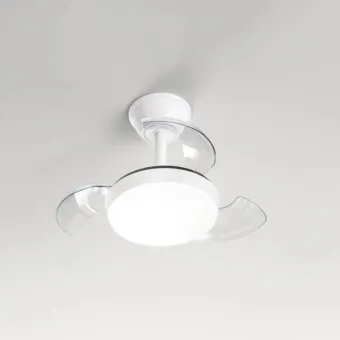 MINI OPEN+ cuando está apagado parece una lámpara de techo, pero si enciendes la función de ventilación, salen las 3 aspas de acrílico transparente. La fuente de luz se encuentra en el interior del difusor de acrílico satinado, lo que garantiza una excelente difusión y facilidad de limpieza. El mando a distancia por ondas de radio (incluido) te permite elegir entre 6 velocidades diferentes, y también puedes configurar un temporizador de apagado... ¡ideal para pasar la noche! Gracias al innovador sistema LED es posible elegir en cualquier momento si utilizar luz 3000K-4000K-6000K. Se incluyen 2 varillas de extensión de 12 y 25 cm.