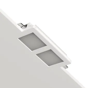 ASOR D SLIM C13D: La luce che emerge dal soffitto, un design a scomparsa totale con rasatura perfetta per un'integrazione impeccabile. ASOR D SLIM C13D, il faretto in gesso da incasso rettangolare progettato per una fusione totale con il tuo soffitto in cartongesso. La sua particolarità è la copertura opale delle lampadine, che una volta installate, stuccate e rasate, lasciano visibile solo un'elegante emissione di luce diffusa. Il bordo a filo di ASOR D SLIM C13D è studiato per una rasatura ottimale, garantendo una superficie perfettamente livellata e riducendo al minimo il rischio di crepe. Le staffe in lamiera zincata assicurano una tenuta duratura, mentre la copertura in plexiglas diffonde la luce in modo omogeneo, nascondendo le lampadine GU10 (non incluse) per un risultato estetico pulito e sofisticato.