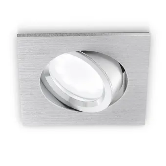 Struttura in alluminio. Finitura in alluminio spazzolato. Il faretto da incasso per pareti in cartongesso è provvisto di alette per facilitare l'installazione ed è predisposto per un portalampade attacco GU10 per lampadine a led. Studio e progettazione Gea Led. Lampadine non incluse.