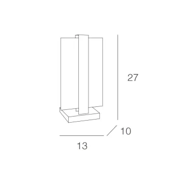 La lampe de table a une base chromée. Le diffuseur en verre dépoli extra-clair avec bord transparent. La partie centrale est terminée par une bande en métal peint disponible en noir, blanc ou sable.