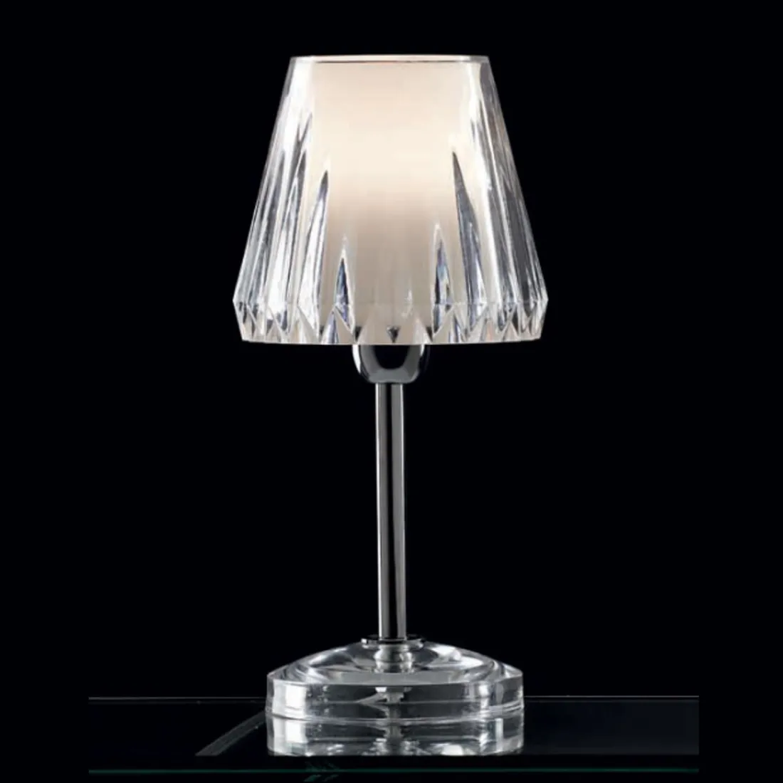 - Métal chromé, base et diffuseur en acrylique
