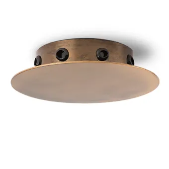Rosace en métal laitonné bruni avec TROUS LATÉRAUX et plaque frontale. Une base avec 8 trous LATÉRAUX pour avoir la possibilité d'installer un maximum de huit points lumineux.
