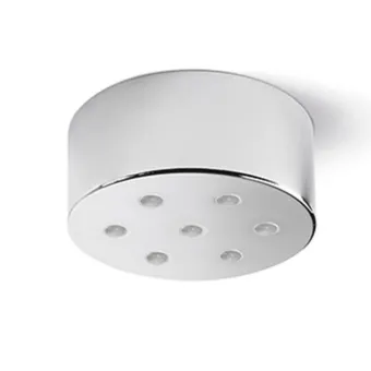 Auvent de plafond ou mural en chrome poli, chrome brossé, blanc ou noir, métal moderne, pour installer un maximum de 7 points lumineux, à effet de grappe ou espacés avec l'application d'un autre accessoire (voir 6249).