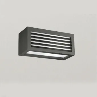 Matériel en couleur aluminium, gris blanc ou gris anthracite. Diffuseur supérieur, inférieur et frontal en méthacrylate satiné. L'applique est équipée d'un support de lampe avec la douille E27 pour ampoules led. Lampe exclue. Studio & Design Gea Led