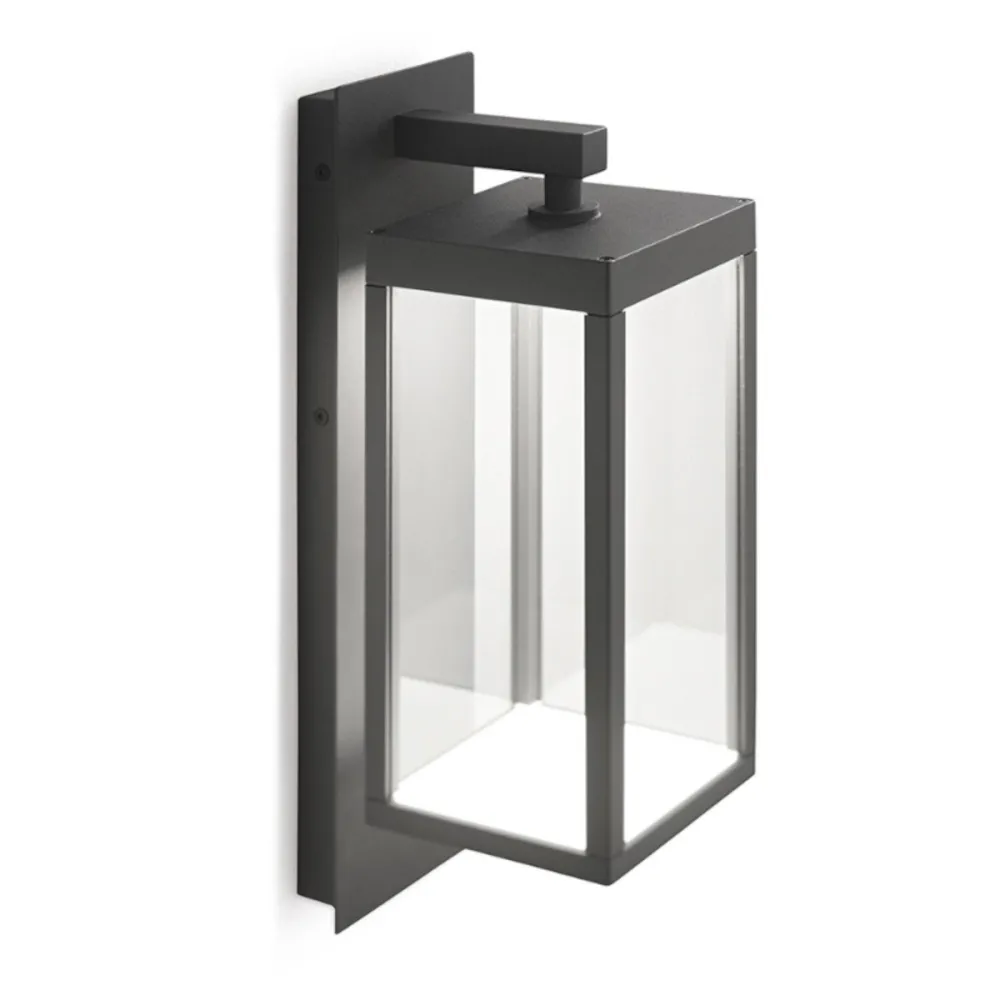 Applique extérieure évoquant une lanterne, mais résolument contemporaine. Cette applique classique et moderne, dotée d'une source lumineuse LED, est idéale pour une installation près des entrées, garages, escaliers, balcons et terrasses, offrant un éclairage diffus et écoénergétique.