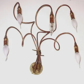 Finition laiton et cuivre vieilli. L'applique comprend cinq douilles en laiton avec connexion E14 pour ampoules halogènes ou LED. La seule précaution à prendre en compte est l'esthétique de l'ampoule, elle reste totalement visible. Ampoules non incluses.