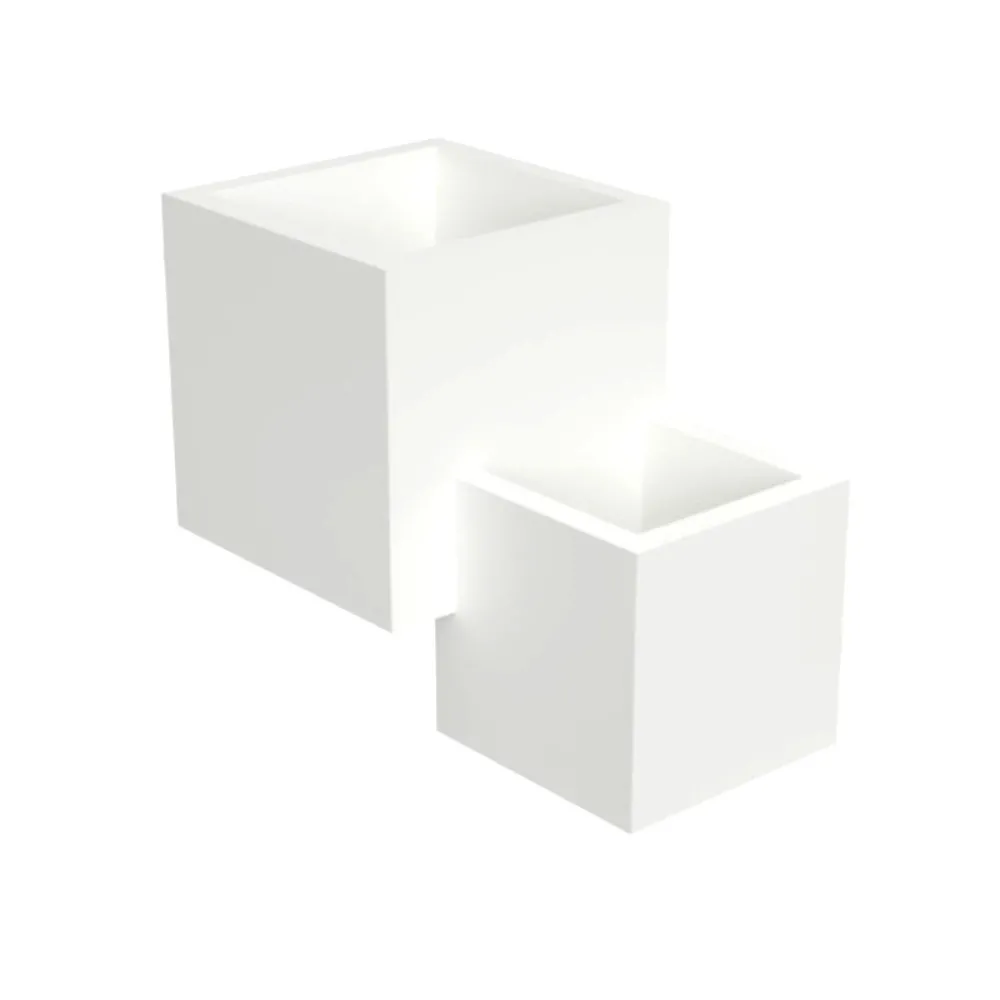 OBMA 200 est une applique murale décorative en plâtre composée de deux cubes, une applique murale décorative, dont la polyvalence la rend adaptée à tous les intérieurs. Les deux cubes produisent une lumière à double émission (haut-bas) projetée sur les murs pour un éclairage indirect, ce qui le rend adapté à une utilisation dans n'importe quel environnement. Equipé d'une double émission lumineuse vers le haut et vers le bas. Selon l'effet souhaité, la lampe peut être laissée dans la version couleur d'origine (blanc) ou peinte dans la couleur souhaitée.