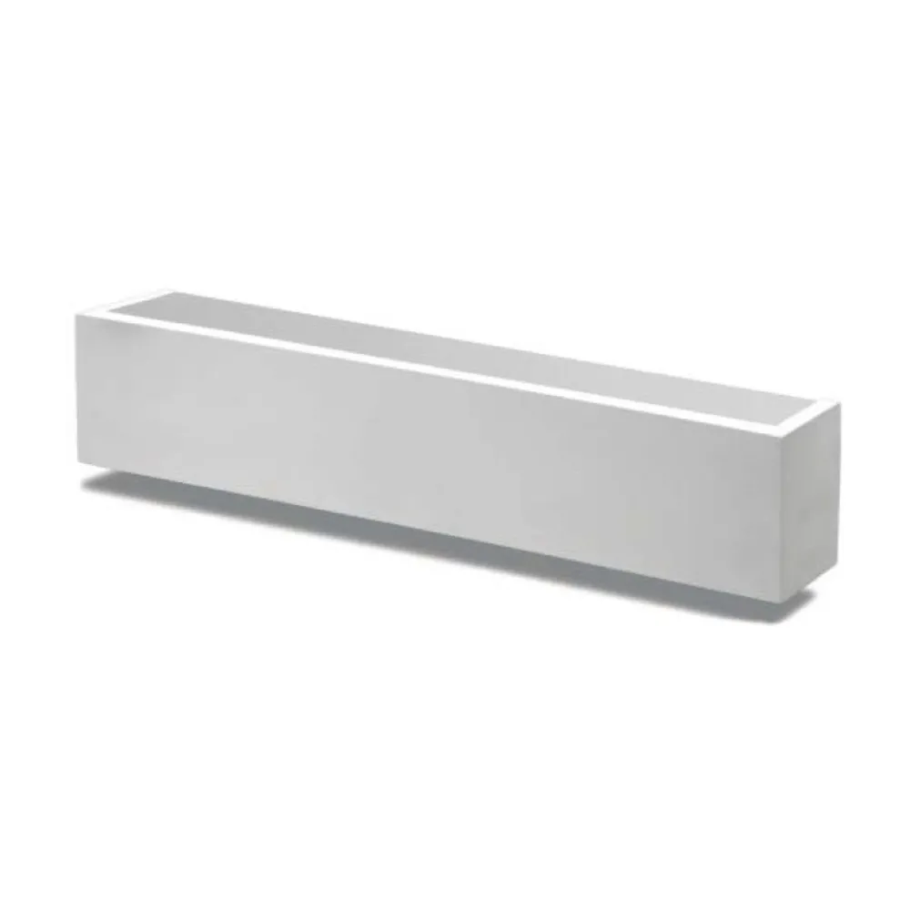 Applique en plâtre de forme géométrique, essentielle et épurée qui éclaire vers le haut. Une lumière indirecte qui se reflète au plafond et crée une atmosphère de compagnie agréable.