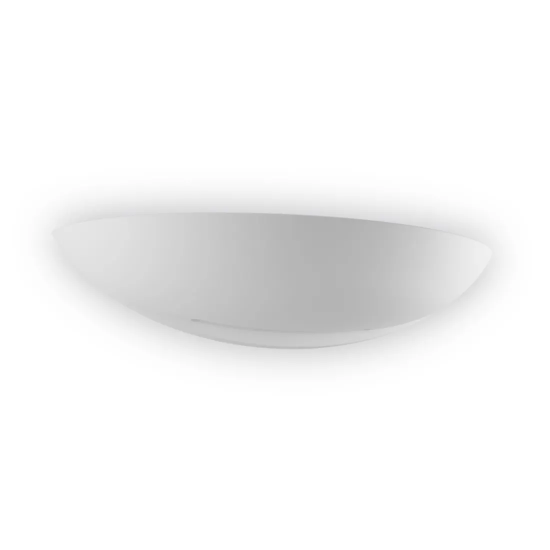 Corps en plâtre blanc pouvant être peint à l'aquarelle, il présente une lumière particulière découpée dans la partie inférieure pour créer une double émission de lumière au-dessus et au-dessous. L'applique est équipée d'un module LED intégré de 19,5W, avec des nuances de lumière chaude (3000°K). Module LED et transformateur inclus.