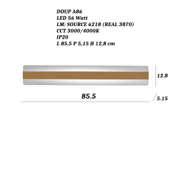 L'applique murale LED DOUP A86 CCT est équipée d'un système d'éclairage moderne et polyvalent qui offre la possibilité de régler la température de couleur de la lumière (CCT) de 3000°K à 4000°K, lors de l'installation. Grâce à la technologie LED, l'applique garantit un éclairage efficace et écologique, réduisant considérablement la consommation d'énergie par rapport aux ampoules traditionnelles d'autrefois.