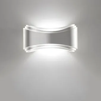 Applique réalisée en bandes d'acier soigneusement pliées à la main pour créer une forme fluide et harmonieuse. Source lumineuse halogène avec variateur d'intensité. Fabriquée en Italie.