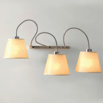 L' applique est équipée de trois douilles E27 pour lampes LED ; nous n'indiquons pas la puissance de l'ampoule LED car elles sont en constante évolution et n'ayant pas une forte émission de chaleur contrairement aux halogènes, elles peuvent être constituées de n'importe quelle puissance du moment que les dimensions de son boîtier sont respectées.