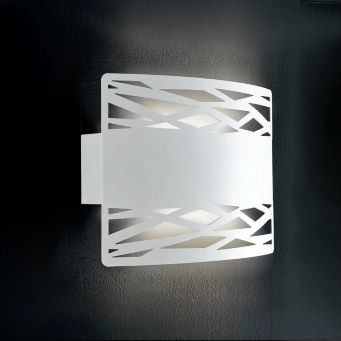 Applique moderne en métal blanc perforé d'origine à adapter dans des environnements au style contemporain. Éclairage indirect qui ne dérange pas l'œil.