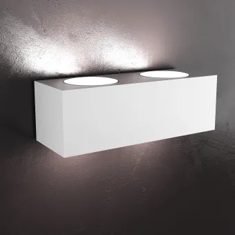 Plaque métallique peinte en différentes finitions unies en blanc, gris ou sable. L'applique monte quatre douilles (2 en haut et 2 en bas) douille GX53 pour ampoules led 9W max. Ampoules exclues.