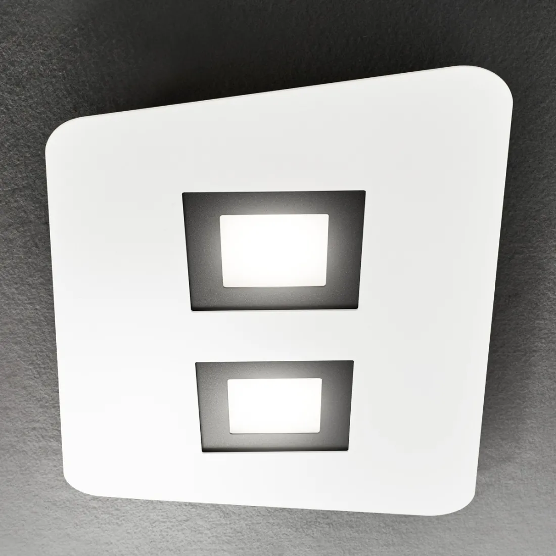Le plafonnier DEDALO 2 est équipé de DEUX douilles LED GX53 8W, non incluses.
