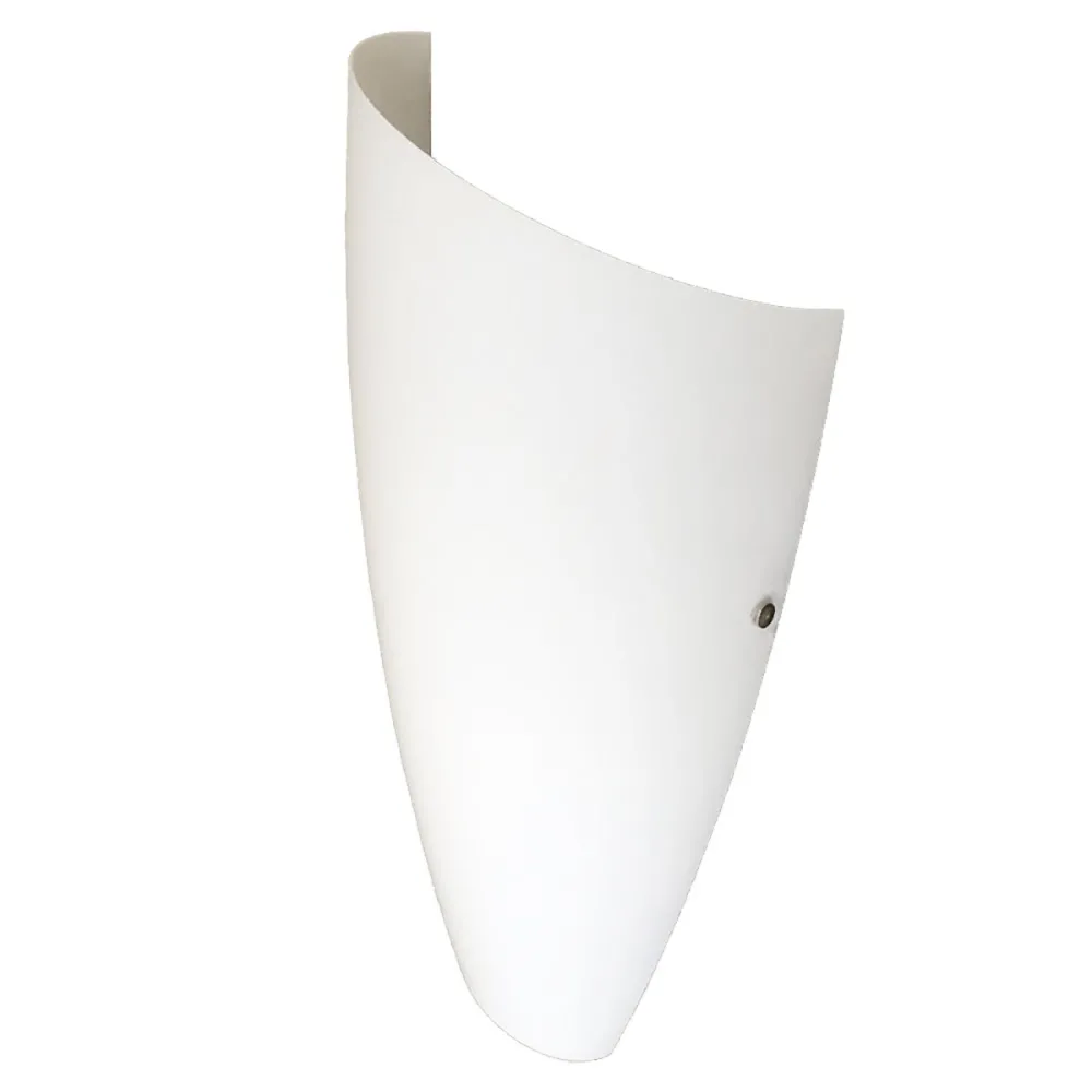 L'applique 2275 AP présente du verre soufflé blanc, une structure interne en métal blanc et des boutons de support en verre chromé poli visibles.