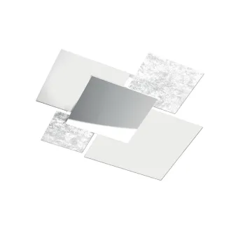 Verre feuilleté extra-clair en noir-blanc, blanc et feuille d'argent, blanc et feuille d'or ou tout blanc. Métal de forme carrée centrale en chrome poli. Il monte quatre douilles avec la douille E27 pour ampoules led. Lampes non incluses.