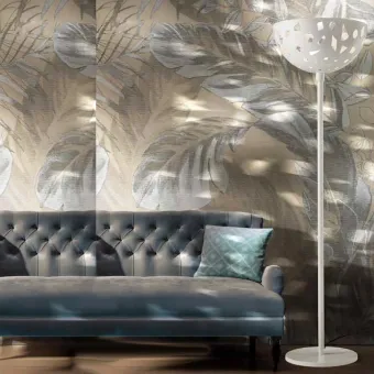 La lumière est émise vers le haut, mais les découpes laser de l'abat-jour diffusent une douce lueur chaleureuse qui s'harmonise avec un mobilier moderne. Cette lumière diffuse est idéale pour toutes les pièces de la maison.