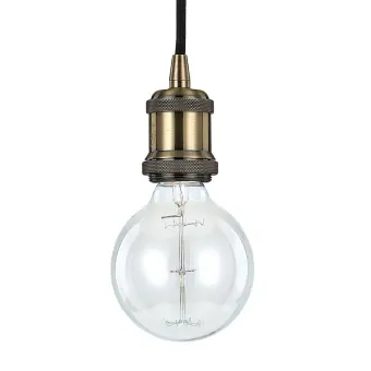 Structure métallique en cuivre vieilli ou bruni. Fil électrique en tissu noir. La suspension est équipée d'une douille E27 pour ampoules LED de toute forme et couleur. Ampoule non incluse.
