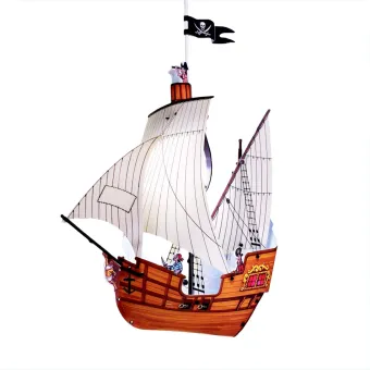 Suspension qui met en scène le voilier sombre des méchants, celui des pirates... pour les garçons les plus combatifs et tenaces qui veulent prendre possession de tout ce qui les entoure et enrichir leur trésor. Une lampe qui nous identifie un instant dans ce fantastique conte de fées. Fabriqué en Italie.