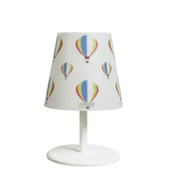 Abat-jour en matière plastique légère avec abat-jour décoré de jolis ballons colorés volant dans le ciel. Une lampe de chevet en forme de cône qui égaye et donne de la couleur aux chambres d'enfants. Illuminez la pièce et en même temps donnez une touche de couleur. Un produit Made in Italy.