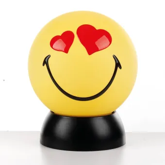 Abat-jour sympa et amusant adapté aux chambres d'enfants. Une petite lampe de table légère et colorée qui donne de la joie et de la compagnie aux petites filles. Les smileys intemporels et bien connus sont une famille de grimaces qui expriment leur humeur à travers des grimaces ou des portraits d'affection.