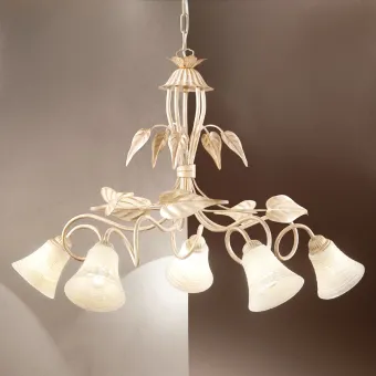 Lustre classique avec des feuilles et des lumières orientées vers le bas pour un éclairage diffus avec une touche classique. Une suspension multi-lumières adaptée au salon, à la chambre, au bureau... pour une lumière bien répartie avec une touche ornementale. Un produit Made in Italy.