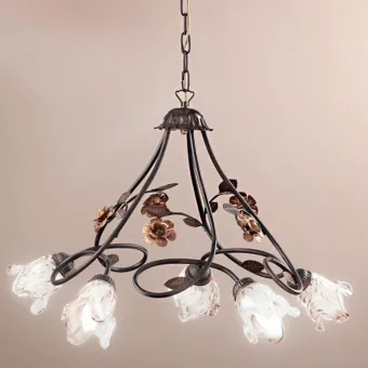 Lustre classique à cinq lumières composé de roses en métal et fini avec des diapositives blanches brillantes avec avveturina en bronze. Une lumière diffuse et bien distribuée pour meubler avec goût n'importe quelle pièce : chambre, salon, cuisine, etc... Un produit Made in Italy