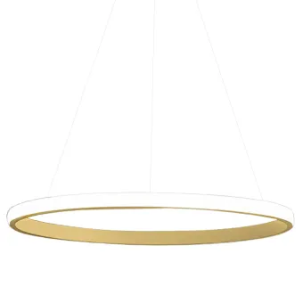 IOLE S1 ORO est une lampe à suspension classique à la forme originale et douce qui flotte avec légèreté dans la pièce. Une suspension qui se distingue des autres par le positionnement de la bande LED sur la partie externe du diffuseur, qui permet un éclairage plus grand et plus répandu dans tout l'environnement.
