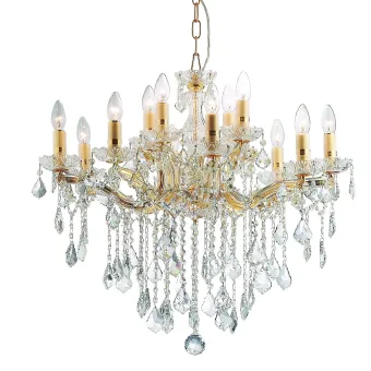 Lampe à suspension en verre et cristal avec cadre doré 12 lumières E14 max. 40W