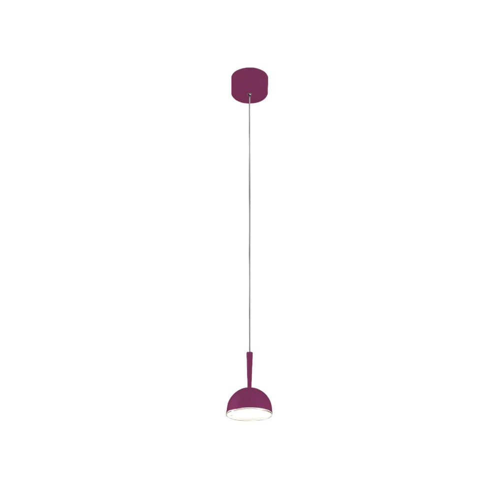 JINGLE S1 est une suspension simple au design moderne et minimaliste, disponible en magenta, vert forêt, vert sauge, pêche, sable mouillé, bleu ciel ou bleu denim. Ces couleurs éclatantes sont idéales pour illuminer les chambres d'enfants ou d'autres espaces colorés. L'abat-jour principal, en forme de dôme semi-sphérique, se prolonge par un col conique étroit. Ce col est relié à un câble de suspension très fin et discret, donnant l'impression que la suspension flotte. La base de fixation au plafond, de forme ronde, est assortie à l'abat-jour. Module LED intégré.