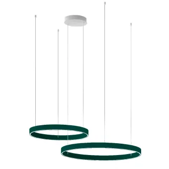 La suspension GAME BIS S80+S100 est un luminaire contemporain composé de deux élégants cercles lumineux de 80 et 100 cm de diamètre, créant un effet à la fois spectaculaire et raffiné. Fixée à un socle de plafond robuste et équipée de trois variateurs d'intensité, cette lampe offre un éclairage bidirectionnel grâce à ses diffuseurs en silicone opale blanc qui projettent la lumière vers le haut et vers le bas. Cette configuration assure un éclairage uniforme et enveloppant de la surface, tout en utilisant le plafond comme réflecteur naturel, agrandissant ainsi l'espace et créant une ambiance particulièrement esthétique.