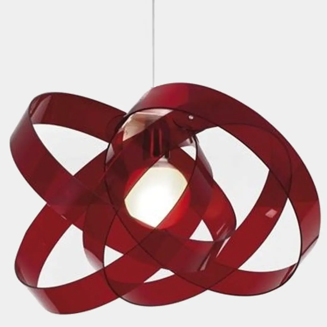Suspension ultra-moderne faite de jolis et originaux cercles qui s'entrecroisent et créent une atmosphère chaleureuse et enveloppante dans la pièce. Un lustre idéal aussi pour donner une touche de couleur au salon, à la chambre, à l'entrée... pour un éclairage vraiment scénique. Un produit Made in Italy.