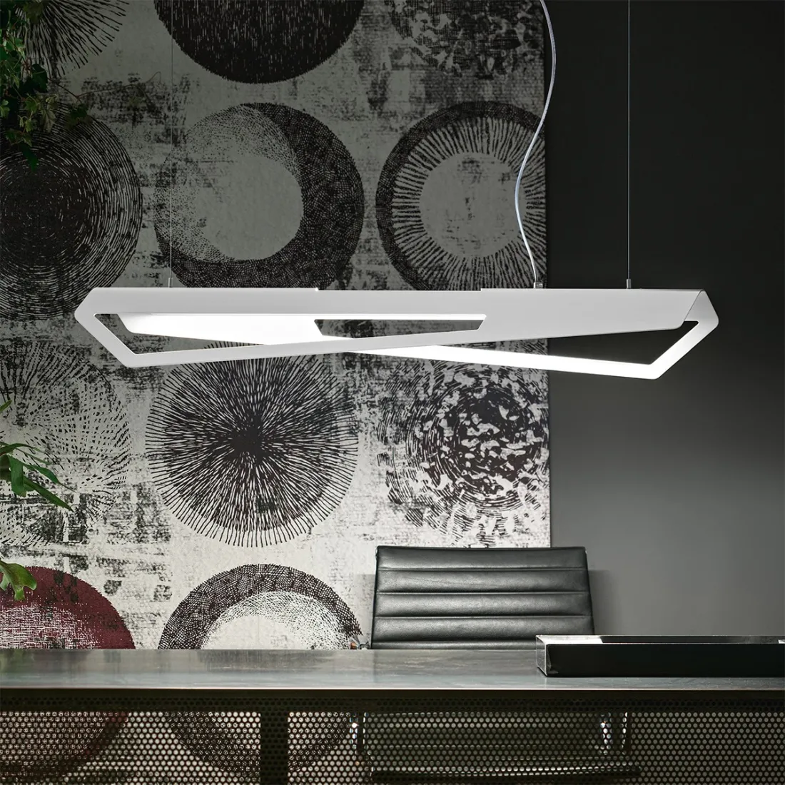 Suspension ultra-moderne au design singulier. Un corps lumineux composé d'éléments métalliques géométriques qui définissent des lignes précises et définies. Un lustre essentiel qui convient aux environnements domestiques et de bureau. Un produit Made in Italy.