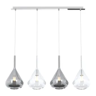 Le lustre 1177 KONA S4 est doté d'une base en chrome poli qui lui confère une finition élégante. Les verres sont en verre fumé et transparent, un agréable impact chromatique qui crée un effet de contraste visuel. Le lustre KONA S4 1177 est compatible avec les ampoules LED E27, offrant une option économe en énergie et durable. La combinaison de matériaux et de couleurs fait de ce lustre un élément de design moderne pour éclairer votre maison avec style.