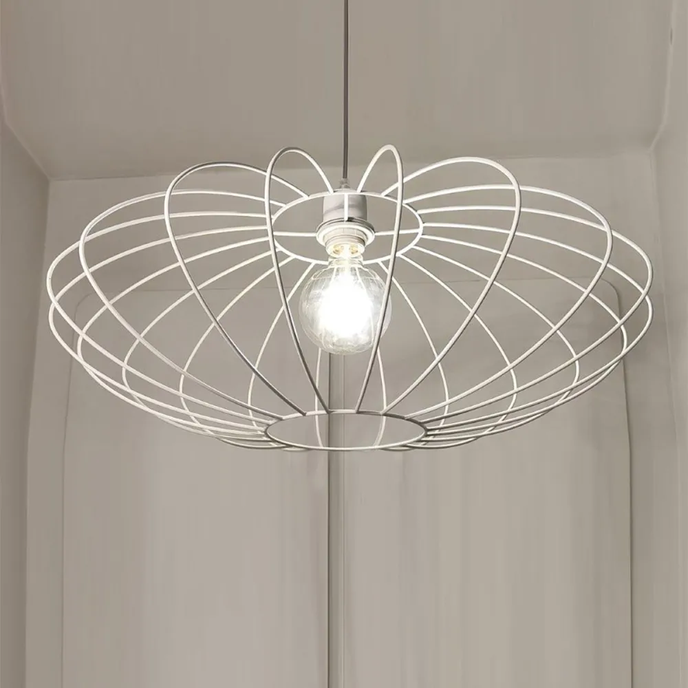 Lampe à suspension ZUCCA en métal en forme de citrouille d'où dérive le nom, un métal nu capable de rayonner la lumière dans toute la pièce. Les fines tiges de fer s’enroulent élégamment les unes autour des autres, créant un maillage gracieux et léger. Grâce à sa grande flexibilité dans la conception de l'éclairage, cette lampe convainc et s'adapte à différents environnements et styles d'ameublement.