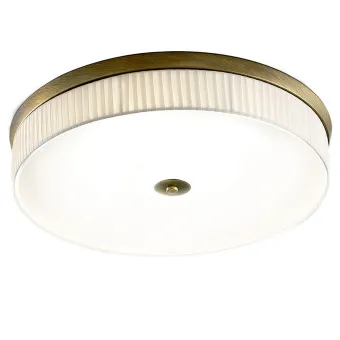Le plafonnier est disponible en métal bruni et tissu ivoire. SUR DEMANDE métal blanc toundra et tissu blanc, métal blanc savane et tissu ivoire, métal bruni et tissu blanc, métal à la feuille d'argent et tissu blanc ou métal à la feuille d'or et tissu ivoire.