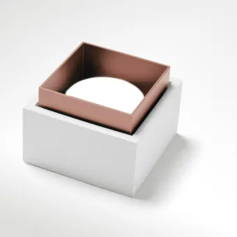 SYME square est un petit plafonnier aux dimensions compactes, mesurant 11 centimètres de largeur et 8 centimètres de saillie. SYME square est réalisé en plâtre blanc à peindre avec des couleurs spécifiques à base d'eau, tandis qu'à l'intérieur un cadre en aluminium disponible en quatre finitions différentes.