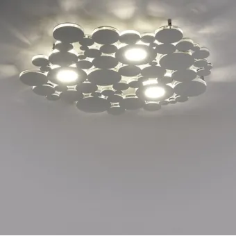 Plafonnier ou applique murale au design moderne et nouveau. Une forme extravagante composée de nombreuses sphères et qui prend l'apparence d'un nuage... jeune et efficace, recommandée pour n'importe quelle pièce de la maison ou du bureau avec une intensité lumineuse réglable. Fabriqué en Italie