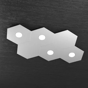 Applique ou plafonnier en métal peint à lumière diffuse. Un plafonnier composé d'éléments hexagonaux à installer aussi bien au plafond qu'au mur pour une lumière homogène et bien répartie. Éléments lumineux + éléments décoratifs pouvant être agencés à volonté. Un produit Made in Italy.