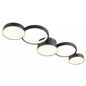 Plafonnier CRONOS : design sculptural à 5 cercles et lumière chaleureuse. Le choix idéal pour les salons, salles à manger ou environnements professionnels nécessitant un éclairage fonctionnel allié à un design artistique et moderne.