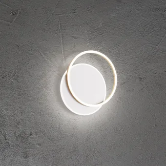 ORBIT 8194 est une applique ou plafonnier au design moderne, qui présente une structure circulaire, la particularité de cette lampe est due au cercle lumineux qui peut tourner et s'ouvrir pour un effet lumineux qui répond à nos besoins, donc la taille varie : diamètre fermé 39,5 cm et ouvert 47,5. Le plafonnier ou applique ORBIT 8194 est en aluminium et métal thermolaqué avec une finition blanc mat + blanc mat ou blanc mat + or brossé (au choix). Diffuseur en acrylique satiné et silicone sur le pourtour de la base.