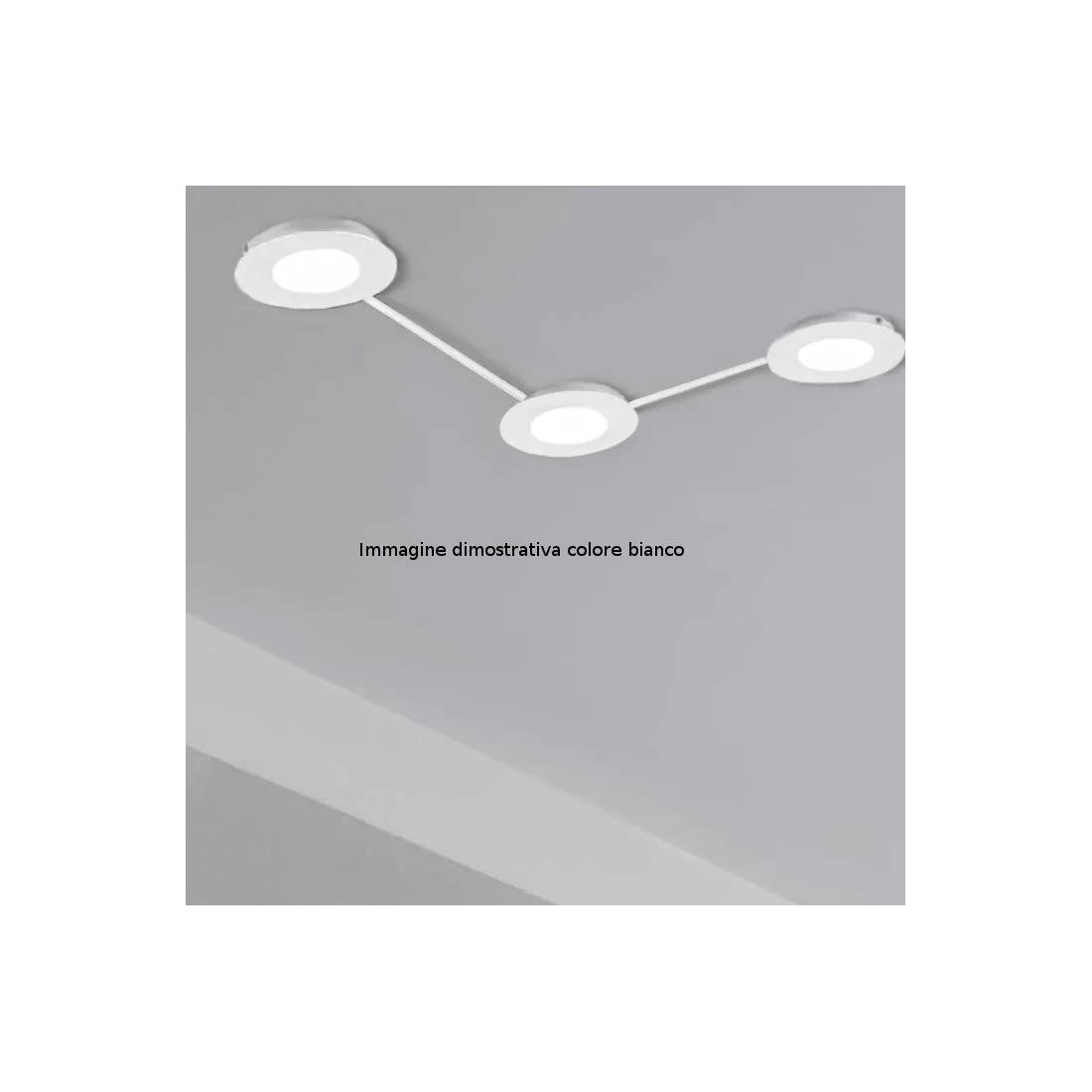 Structure en métal peint en blanc, bronze ou laiton mat. La lampe peut être installée au mur ou au plafond et est équipée de douilles GX53 pour ampoules LED de 9W max. Le plafonnier ou l'applique murale peut être composé et personnalisé avec un minimum de 2 points lumineux jusqu'à un nombre illimité et tous développés à partir de la sortie d'un seul trou du plafond.