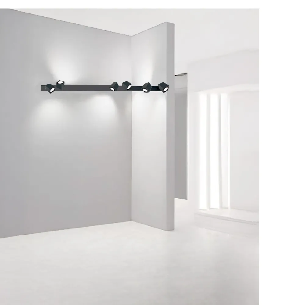 Snodo est un système modulaire extrêmement polyvalent, idéal pour personnaliser l'éclairage de n'importe quel environnement. Conçu pour assurer une flexibilité maximale, Snodo permet de disposer les spots pour satisfaire différents besoins esthétiques et fonctionnels. Ce système peut être courbé ou incliné pour suivre les lignes architecturales de la pièce, créant des configurations uniques et personnalisées. Il est possible de combiner des segments droits avec des angles internes et externes de 90° ou 45°, s'adaptant parfaitement aux espaces disponibles. Adapté aussi bien aux environnements résidentiels que commerciaux, Snodo vous permet de créer différentes atmosphères personnalisées. Spots CARRÉS.