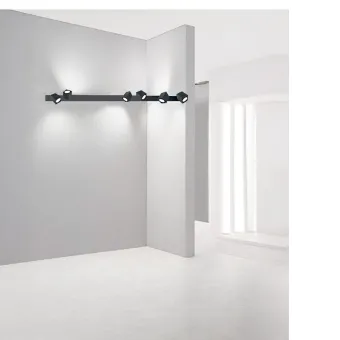 Système de spots modulaire avec structure en métal peint par poudrage et aluminium.