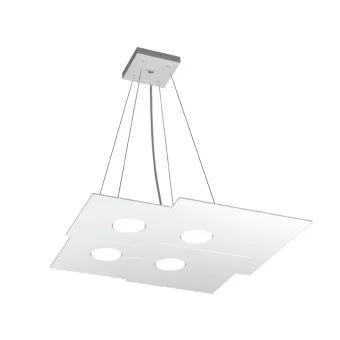 Lampadario moderno essenziale e dalla forma geometrica. Una sospensione semplice da collocare ovunque e in qualsiasi stanza, grazie alle lampadine a led che sopporta. Una sospensione estremamente minimale e funzionale nella sua resa d'illuminazione, grazie a una doppia sorgente di luce, quattro verso il basso e due verso l'alto per illuminare tutta la stanza.