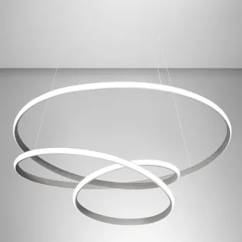 Lampadario moderno dalla forma originale e morbida che volteggia con leggerezza nella stanza. Una sospensione che si differenzia dalle altre per il posizionamento della striscia led nella parte esterna del diffusore, questo permette un illuminazione maggiore e più diffusa in tutto l'ambiente.