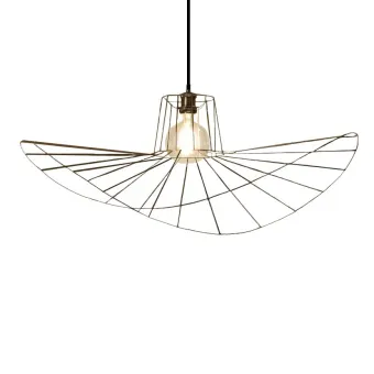 Sospensione SOMBRERO SP realizzata interamente in metallo e da cuoi il nome rispecchia la tipica forma di un cappello sombrero. Una lampada da soffitto minimale ed essenziale capace di radiare la luce in tutta la stanza e creare un'atmosfera accogliente e suggestiva. La lampada a sospensione SOMBRERO SP presenta un design unico e distintivo, una forma curva e ampia, che assomiglia al tradizionale cappello messicano.